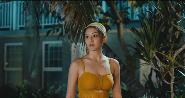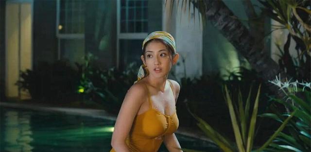 此后伊米娜泳池边的一场戏里,她身穿明艳的黄色连体泳衣,色彩鲜亮,将她的肌肤衬托得更加白皙透亮,头上包裹的头巾是一大亮点,黄蓝相间的色彩搭配与整体造型和谐统一,散发着独特的魅力。