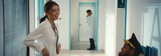 倒是一场医院斗智斗勇的戏份里,她的女医生妆造,配合大段英语对白的松弛感,给了我们不一样的感觉。