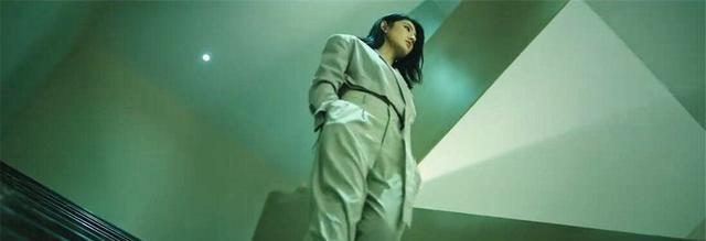 到了《除暴》里,伊米娜的妆造可谓十分惊艳,她出场底妆清透自然,展现了皮肤的细腻质感,好像自带柔光效果一般。精致的眼妆和她细长的眉毛,自然利落,恰到好处地修饰了脸型。